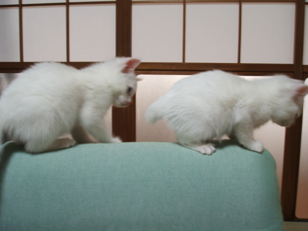 座椅子の背もたれの上部分に2匹で乗って椅子も倒れずこのサイズ。