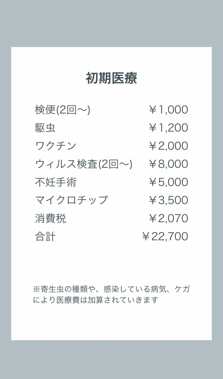 <保護猫1匹に必要な最低限の初期医療>