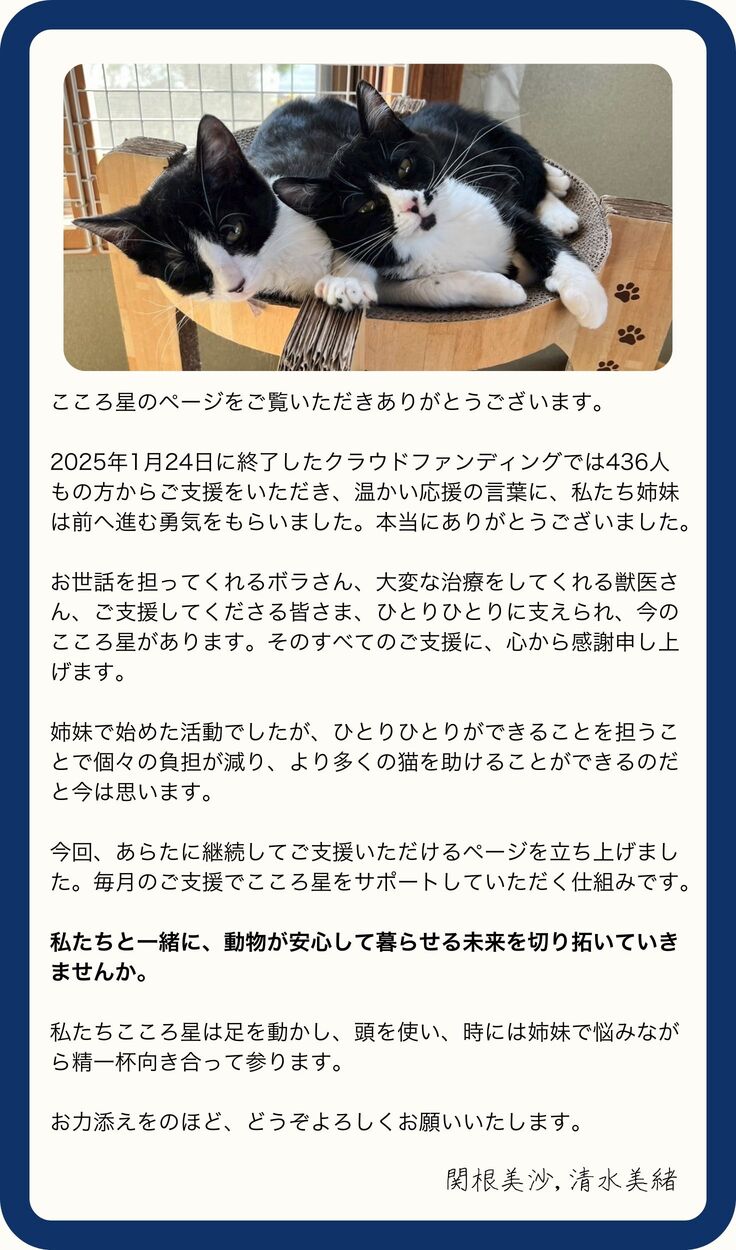 皆様からの温かいご支援を、どうぞよろしくお願いいたします。