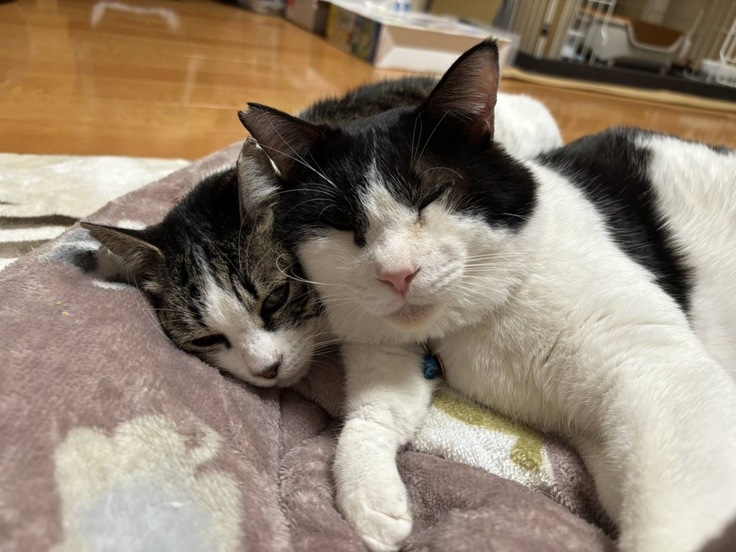 譲渡会で一目惚れしたのが片目の男子、その子を保護した経緯、特徴、生活していくうえでの留意点など詳しく話を聞く事ができとても安心しました。また、ペットショップから迎えた子と元野良猫との相性も心配でしたが、常にお世話をし個々の性格などを理解しているこころ星さんから大丈夫でしょうと言って頂いたので、家族としてお迎えすることができればなと意思が固まりました。