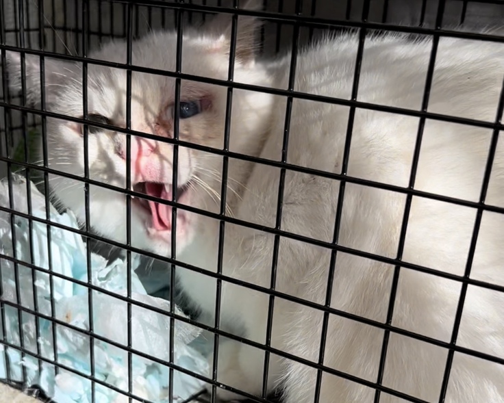 左目が白濁とし、目の周りはただれていました。診察の結果、左目は失明していることがわかりました。