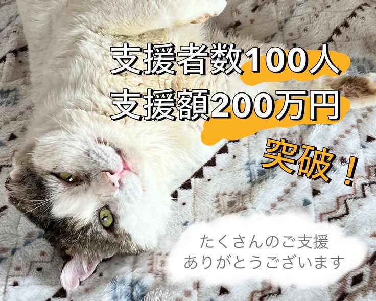 プロジェクトの支援者数が100人を突破し、支援金額が200万円を超えました!