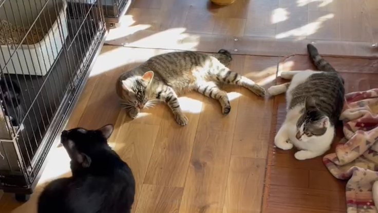 早速兄妹のおはぎ、かのこと同じ慣らしケージへ移動しました。