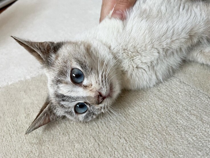 譲渡会で一目惚れしたのが片目の男子、その子を保護した経緯、特徴、生活していくうえでの留意点など詳しく話を聞く事ができとても安心しました。また、ペットショップから迎えた子と元野良猫との相性も心配でしたが、常にお世話をし個々の性格などを理解しているこころ星さんから大丈夫でしょうと言って頂いたので、家族としてお迎えすることができればなと意思が固まりました。