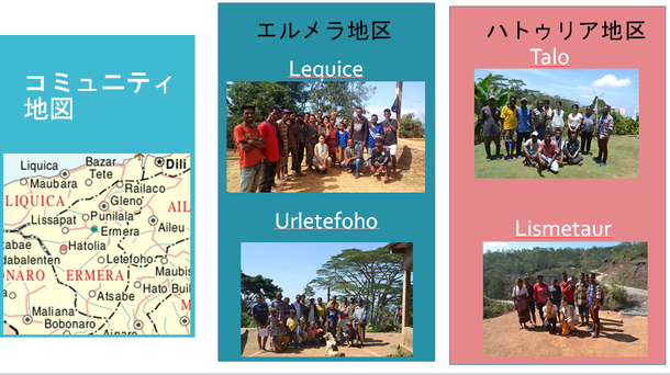 先日、コーヒー観光業の実行先となるコミュニティを選定すべく、エルメラ県にあるエルメラ地区とハトゥリア地区にあるコーヒー生産コミュニティ計四か所を訪問しました。4コミュニティともに、それぞれ特徴があり、素晴らしいコミュニティでしたが、今回はアクセスやコミュニティのキャパシティなどの設備面、聞き取り調査を通じたコーヒー観光業に関する興味の度合い、また食事やホスピタリティ等を判断した結果、エルメラ地区のLismetaurをコーヒー観光業のパイロットコミュニティとして選定しました。
