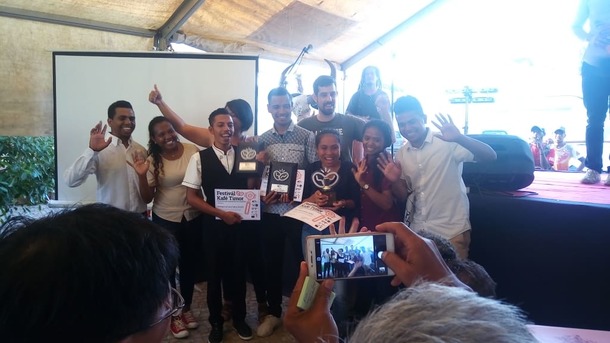 東ティモールでは、年に一度、東ティモール・コーヒーの宣伝とコーヒー生産者へのトレーニングを目的として、コーヒーフェスティバル (Festival Kafe Timor )が開催されます。2016年から始まり、今年は3年目を迎えました。このコーヒーフェスティバルの最大の特徴としては、5日間のフェスティバルが東ティモール各地で同時開催されることだと思います。これは、首都のディリに来られない地方のコーヒー生産者も出席できるようにとの配慮からだそうです。日本でいうと、年に一度のイベントが、東京、大阪、名古屋で同時開催されるような感覚でしょうか。