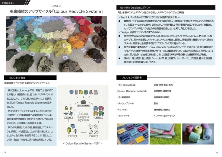 このたび、colourloopの「Colour Recycle System」が、経済産業省 近畿経済産業局が推進する『Rethink Designプロジェクト』の実践事例として採用され、3月24日に公開された公式レポート「Rethink Design Report 2025」に掲載されました。