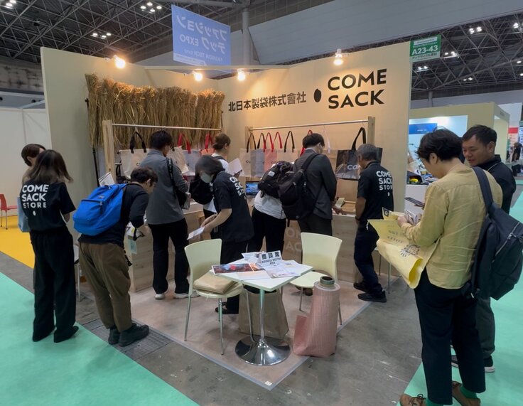 お米由来のバイオマスプラスチック「ライスレジン」を使用した新作COMESACKを製作し、展示会・商談会での発表ができました。10月・11月・12月と3ヵ月連続での出展となり、なかなか大変なスケジュールではありましたが、ここから始まったつながりが実を結ぼうとしております。まだ情報解禁日が来ておりませんでしたので企業名は伏せておきますが、皆さんがご存じの企業とのコラボになります。発表できる日はまだかまだかと気がはやるばかりです。