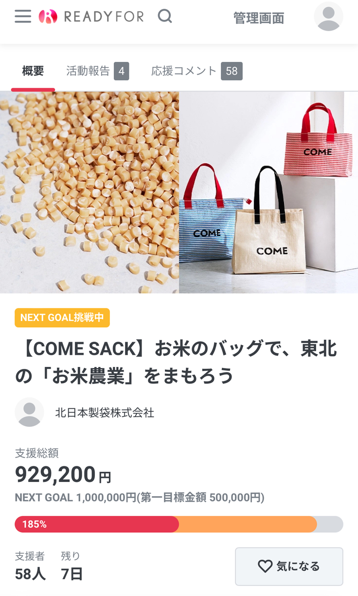 みなさまのご支援のおかげで、今日現在で185%まで漕ぎつけましたことお礼申し上げます。