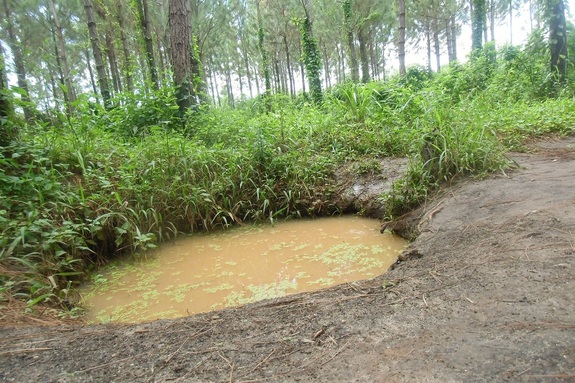 井戸が遠い場合には、溜め池の水を使います。