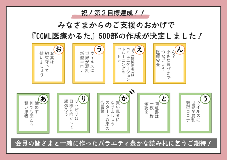 祝!第2目標達成!! 『COML医療かるた』を500部作成します!