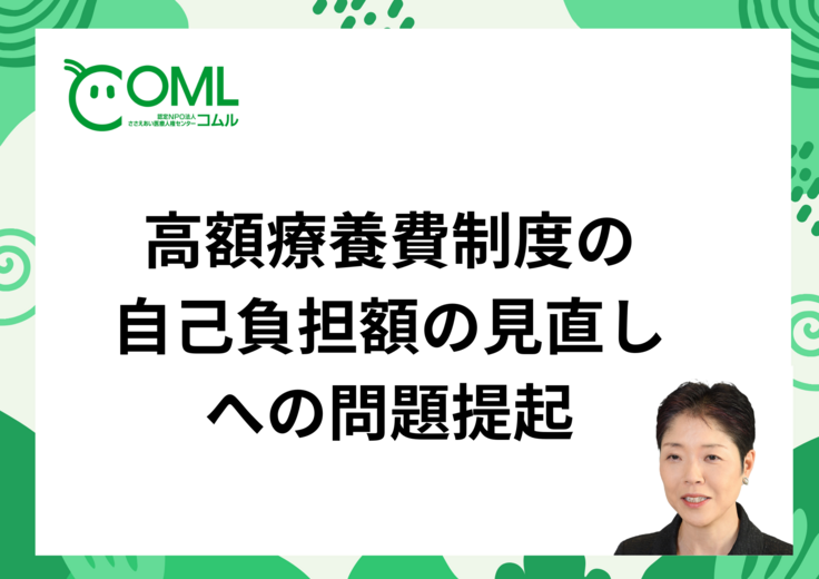 厚生労働省や文部科学省などの審議会、検討会に数多く出席して政策提言することもCOML理事長である私(山口育子)の日々の大きな役割です。医療行政にかかわるなかで、現在ホットな話題になっている高額療養制度についても、これまで思うところがありました。そこで、COMLの会報誌2025年2月号の私のコーナー「COMLメッセージ」で次のような問題提起をしました。現在、患者会の方々が展開されている引きあげ反対とは少し異なる論調ですが、よろしかったら読んでください。なお、一部の切り取り転載は固くお断りします。
