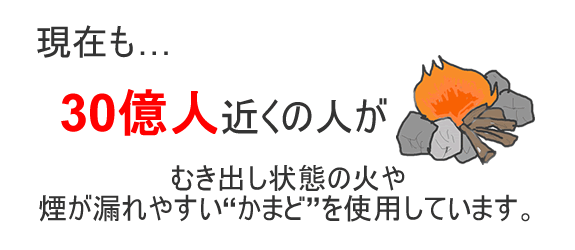 世界にはこんなにも多くの人が、薪や動物の糞、農業廃棄物、石炭等を燃料に、