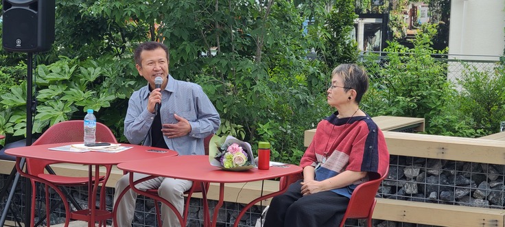 トークライブが始まると最初は、毎回、席は関係者ばかりで埋まっていますが、話が熱を帯びるに連れ、一般のご来場者の方が立ち止まって耳を傾けたり、ベンチに腰掛けてメモを取りながら話を聞き始める方もいらっしゃいました。