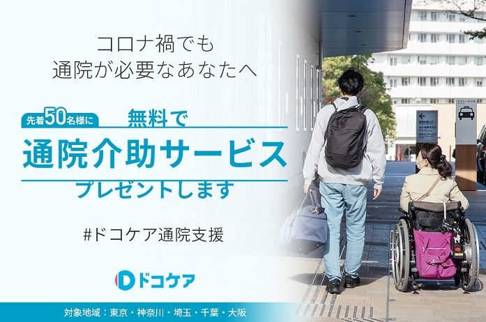 現在は、#ドコケア通院支援キャンペーン として、通院付き添いサービスを無料で提供するキャンペーンや