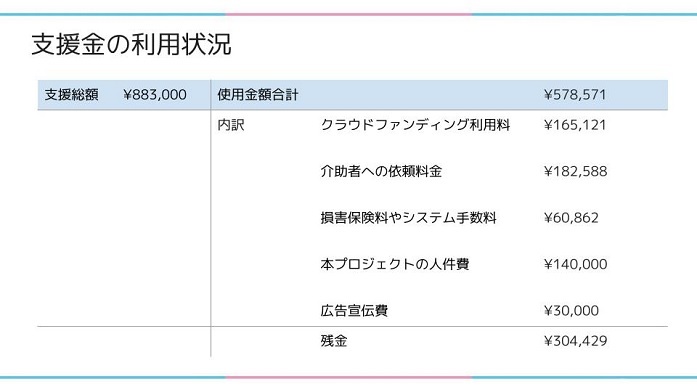 プロジェクト終了から今日まで、支援金を利用して色々なお出かけがありました。