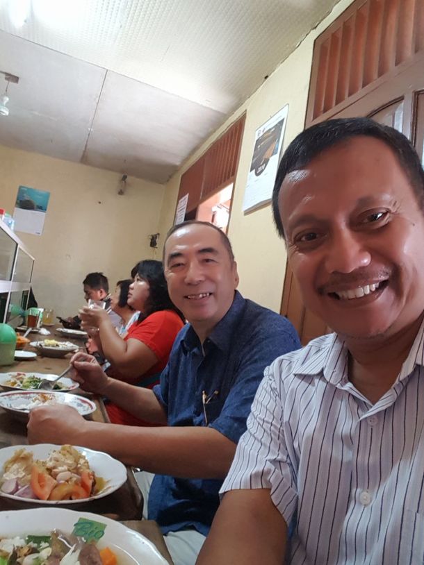 2018 中部ジャワPekargan県 市内の屋台で食事