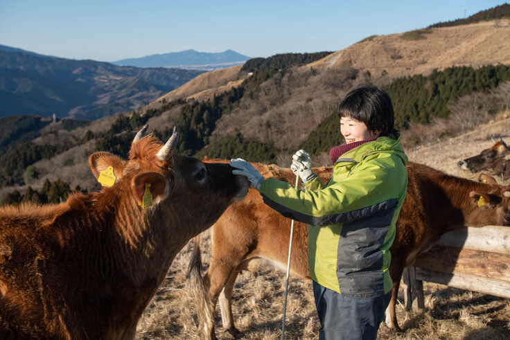 初めて伺った際、その景色にびっくりしました。目の前には富士山、少し目線を逸らせたら相模湾が一望できる絶景。そして、眼下には草に覆われた急斜面。牛たちはそんな場所で何食わぬ顔をして歩いていたのです。