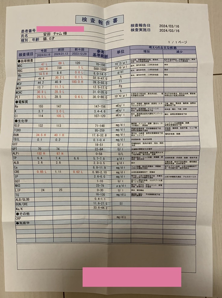 今日はちゃむの定期検診でしたが、そんな事情により娘に1人で行ってもらいました