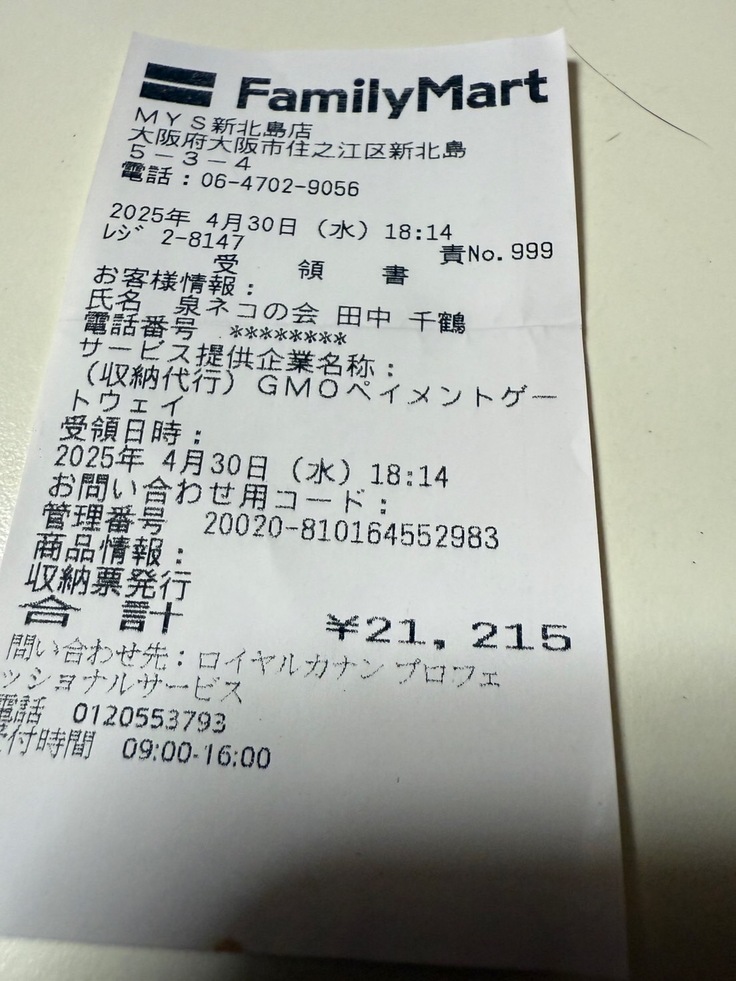 レシートが長すぎてあまり上手く張り付けが出来ていなくて申し訳ありません。