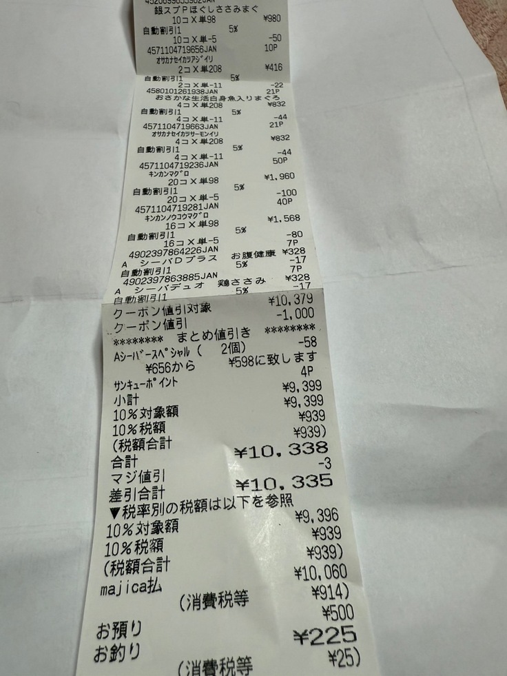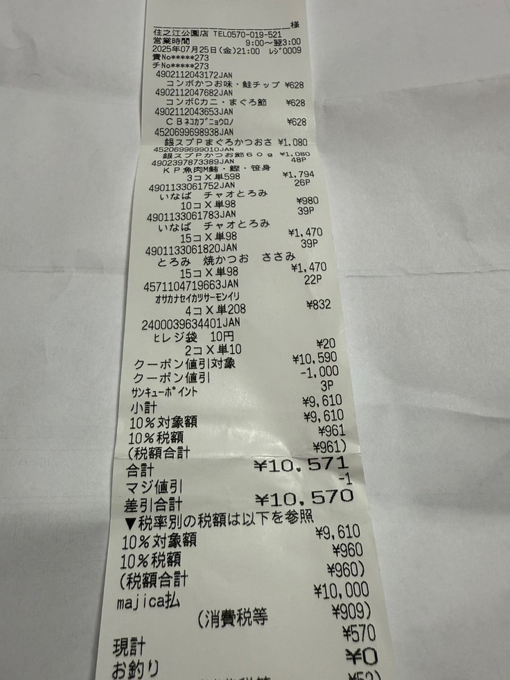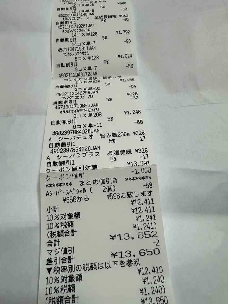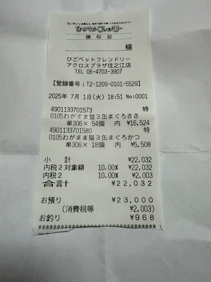 沢山、缶詰を食べさせる事が出来ます。日用品と買ったりしたレシートは記載していませんが、ご支援により、これだけのご飯が買えました。