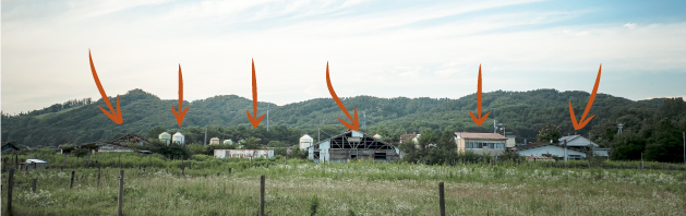 地目上は「畑」となっているこの土地の大部分には、放棄され荒廃し錆びついた牧場の建物が散在しています。ここは、以前は収益も高く、よく運営されていたようです。