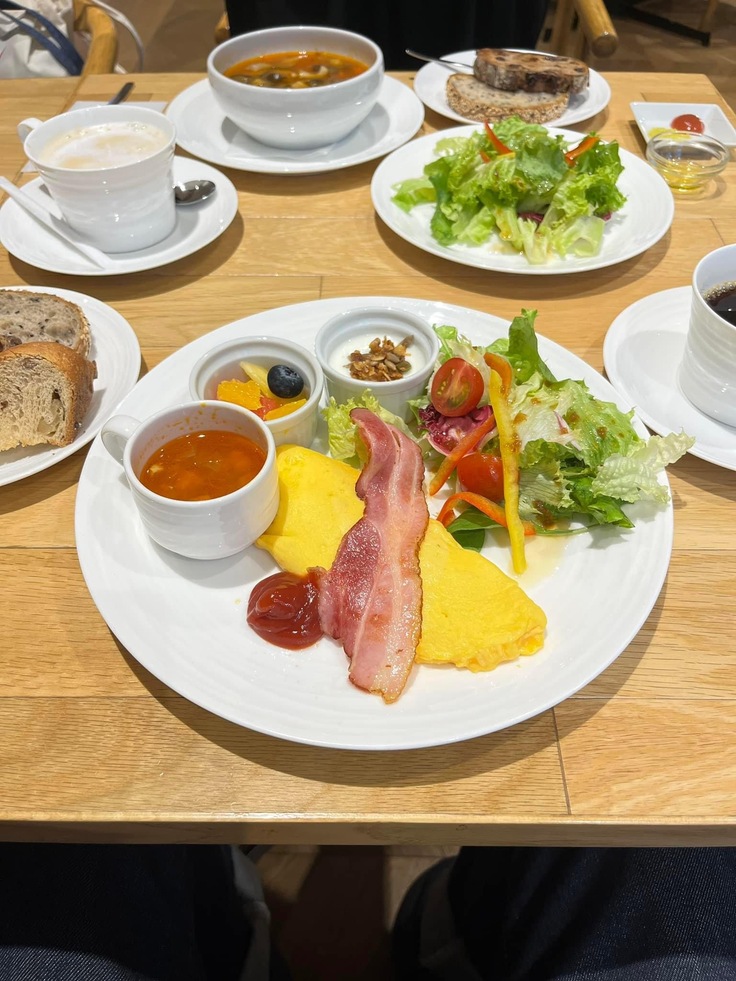 宿の朝食も悪くはないけど、せっかくならばアンデルセンのモーニングへ。サンドイッチスタンドならば平日7時台から開いてるそうで、週末はレストランを開放してウィークエンドモーニングをいただけます。もちろんパンは食べ放題。