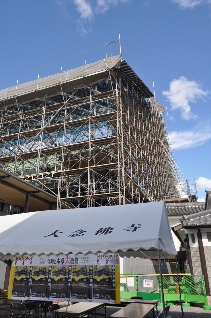 その会場からは大改修真っただ中の「本堂」が臨めます。