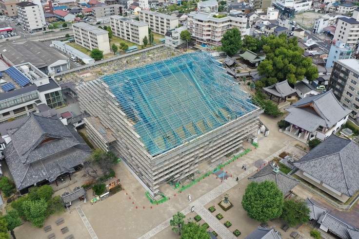 6月には本堂の周囲に足場がたち