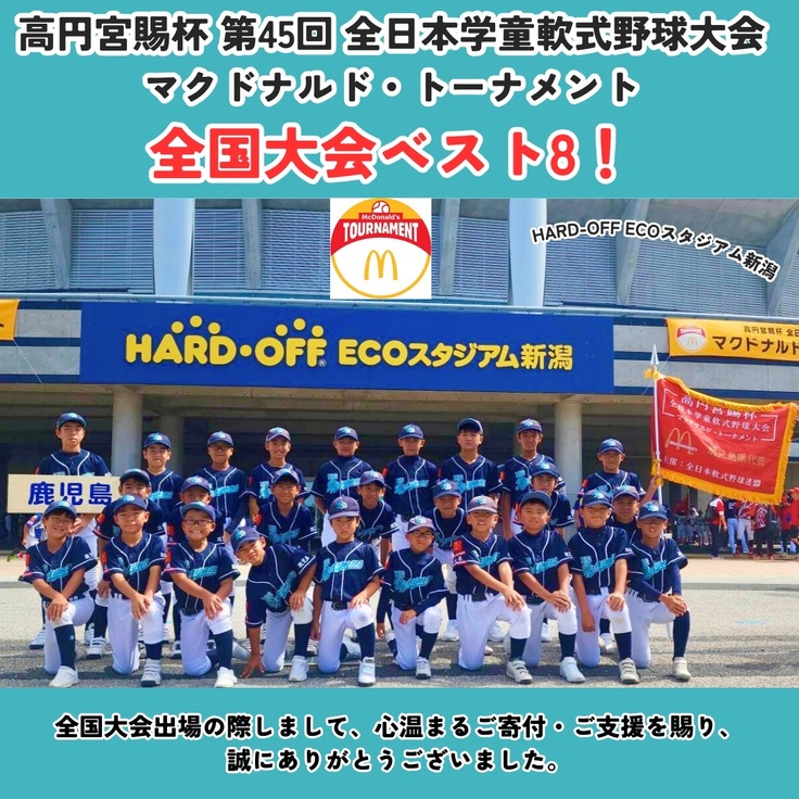 高円宮賜杯第45 回全日本学童軟式野球大会マクドナルド・トーナメントへの出場に当たり、過分なるご厚志を賜り、誠にありがとうございました。