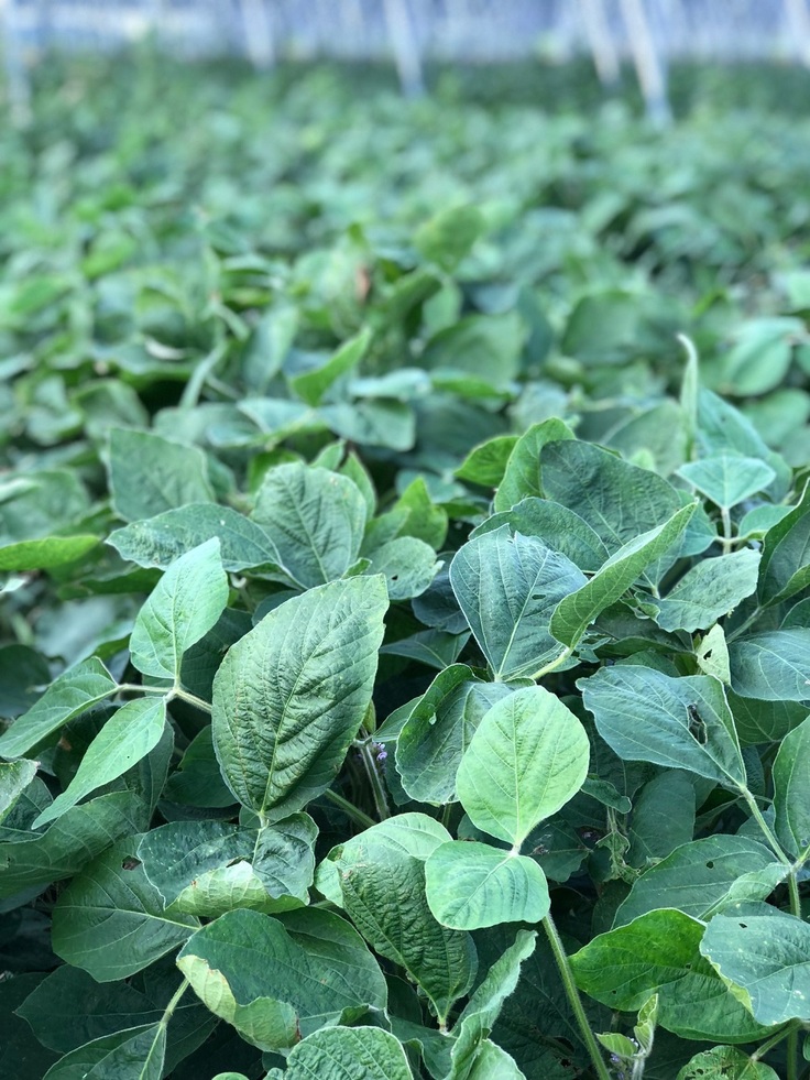 ②太陽光パネルの下ですくすくと育つ大豆たち