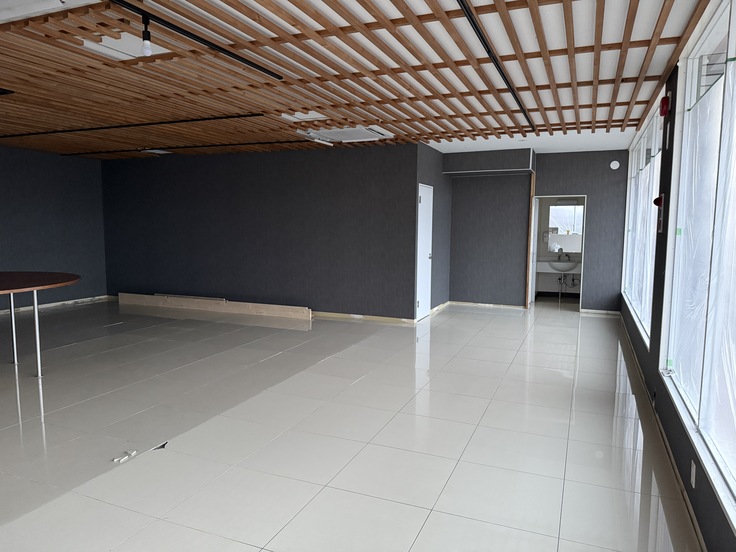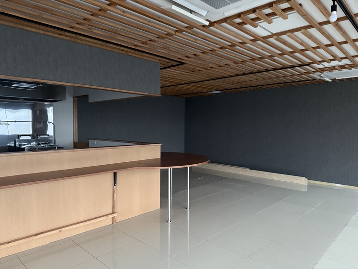 カウンターや天井の格子、広々とした客席スペースも少しずつ形に。