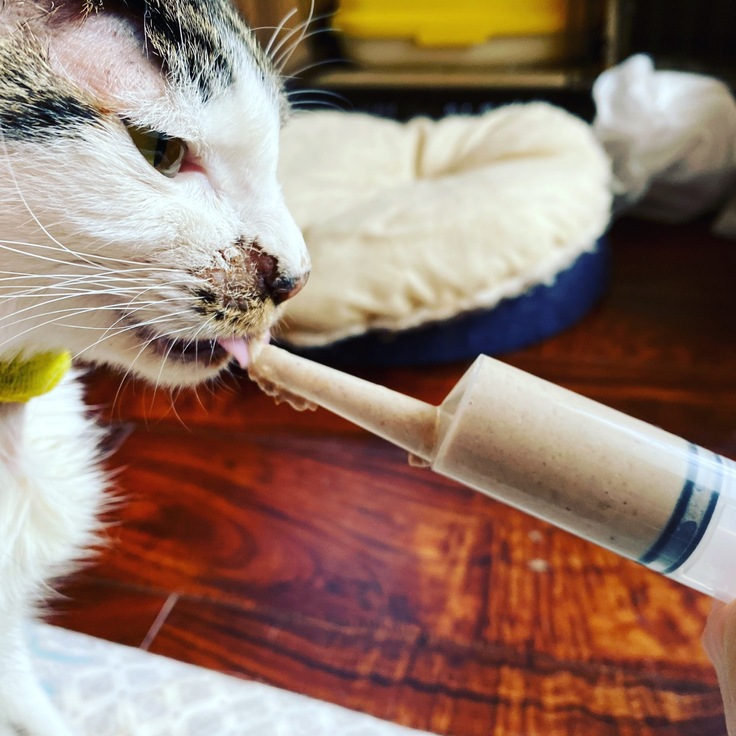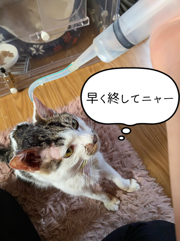 そして、首からの食事タイムの今日は自分でシリンジから食べました!