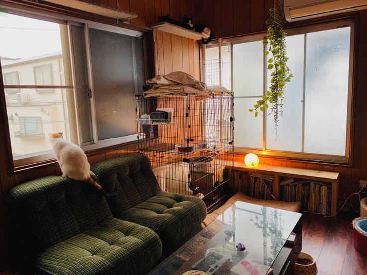 いつもは猫専用の部屋に猫を閉じ込めるのですが、今回はその猫の部屋にテレビのアンテナの中継器があり工事の人も猫の部屋へ出入りすることになったのです。