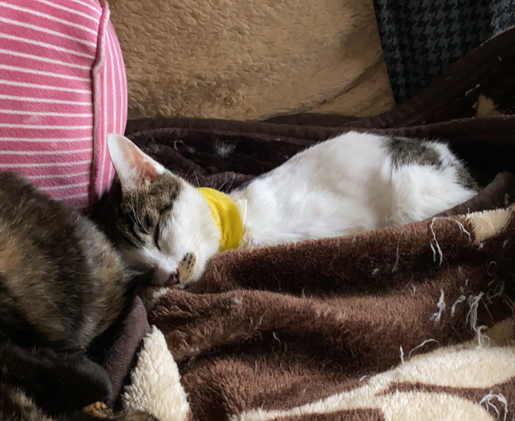 その時は「大丈夫だよ。大丈夫」と優しく首からお腹あたりを優しく撫でてあげました。そうすると、呼吸も少し楽そうになり目を閉じてくれました。