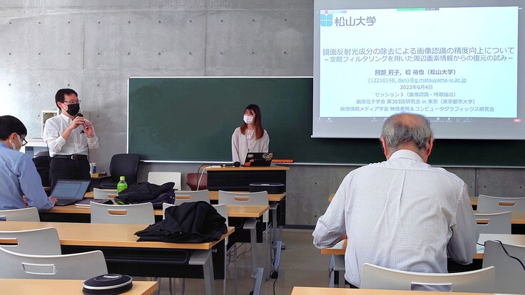 - 阿部莉子,檀裕也「鏡面反射光成分の除去による画像認識の精度向上について~空間フィルタリングを用いた周辺画素情報からの復元の試み~」画像電子学会第305回研究会&映像情報メディア学会(映像表現&コンピュータグラフィックス研究会)(2023年6月4日)