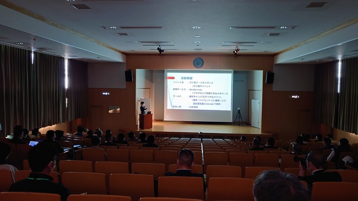 【左】愛媛大学で開催された愛媛デジタルツインフォーラムでの発表(2023年3月11日)と【右】日本大学理工学部で開催された日本デジタルゲーム学会での発表(2023年2月24日)