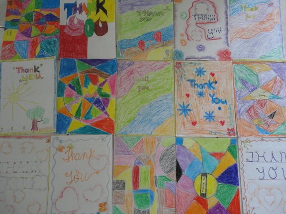 ・子供たちの書いた、サンクスメッセージカードを送付します。