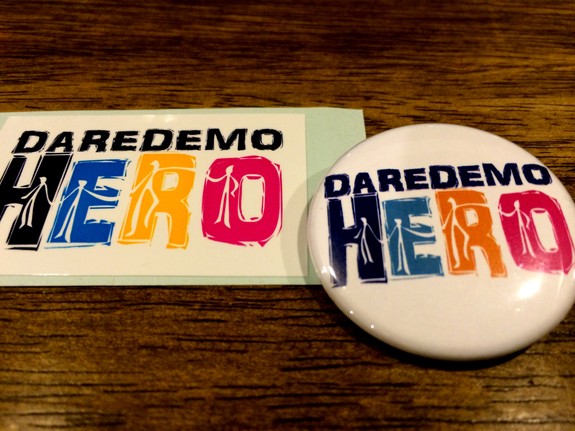 誰でもヒーローになれるステッカーと缶バッジです(笑)
