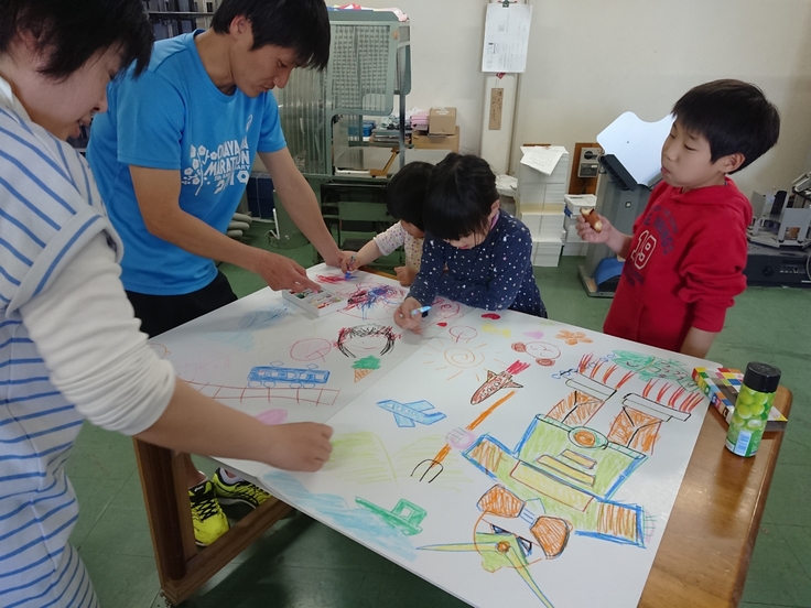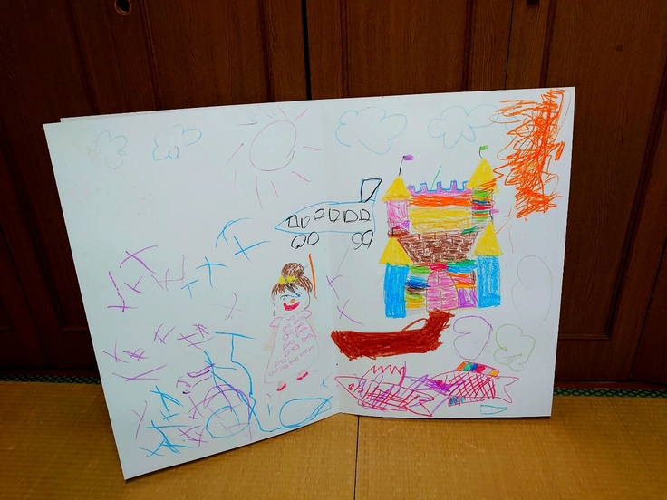 今回の写真は、私たちがマルシェに出店したときに子どもたちが描いてくれたデカらくがき本です。
