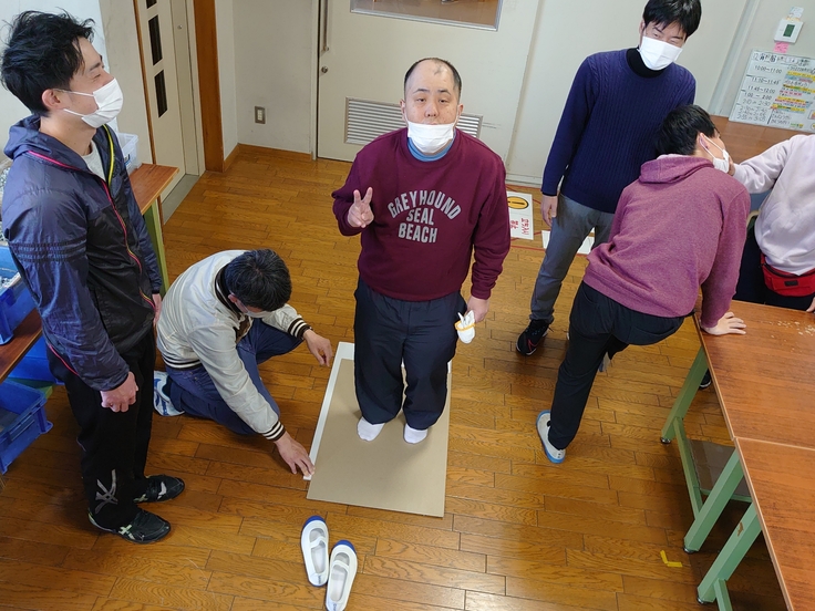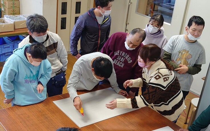 ただいま、障害者施設( ワークプラザ・たんぽぽ )の利用者さんたちががんばってデカらくがき本を作ってくれています。利用者さんたちもとても楽しそうです。