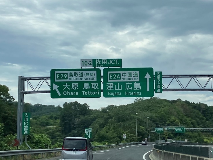 朝早く出たせいか、ほぼ渋滞もなく、第二東名から伊勢湾岸道、新名神、名神高速道路、京滋バイパスを経由して神戸方面へ。神戸JCTからは中国道へ。兵庫県の西の端・佐用JCT辺りを通過したのが11:00頃でした。7時間で岡山県近くまで来ました。早い!!