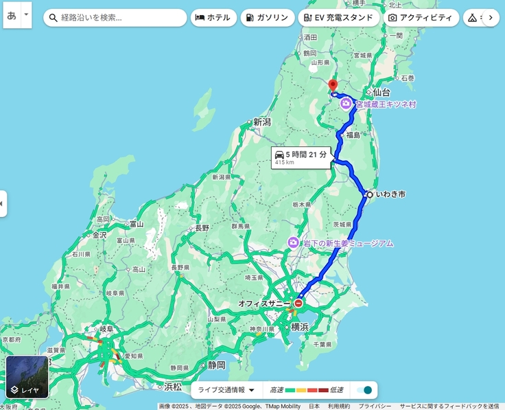 東京を出発したのは、開催前日の11/1(土)。そう!3連休の初日でした。渋滞予想を見ていたら、東北道はかなりの渋滞になりそうとのことだったので、ちょっと遠回りですが常磐道を利用して向かうことにしました。