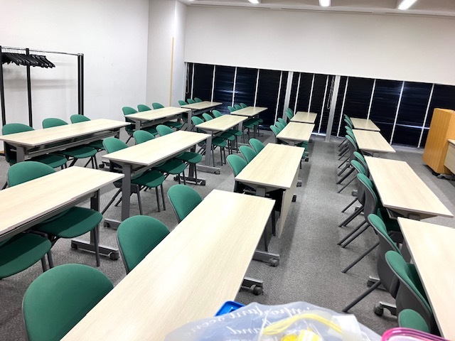 11:00からの開催に向けて、この部屋をいつものように、机や椅子を動かして、体験会用のレイアウトを変えて行きます。どんなレイアウトにするかを考えるのが一番時間がかかります。