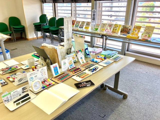 レイアウトを決めてしまえば、「できるびよりコーナー」「書籍」「文具」「道具」のカテゴリーごとに並べていくだけ。できるだけ見やすいディスプレイを心がけます。