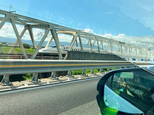 新幹線の岐阜羽島駅近くの東名高速上で、新幹線と並走!!新幹線好きの社長は大喜びでした☆