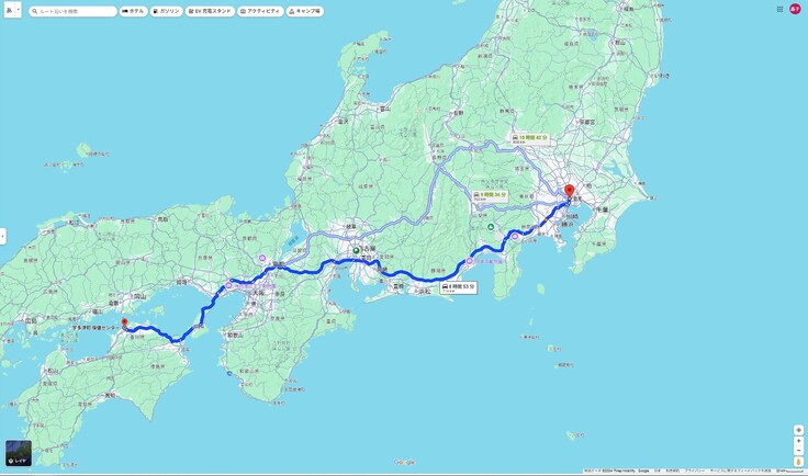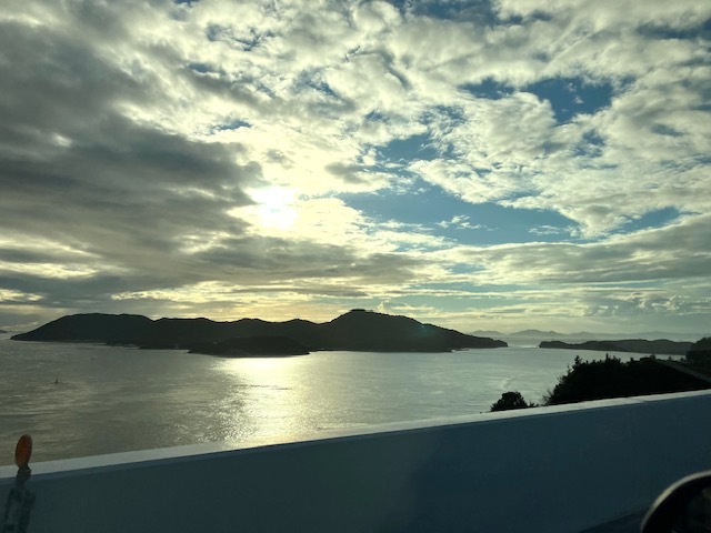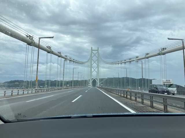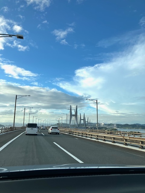 帰りは 2)のルート、「瀬戸大橋」を渡って、岡山を経由して帰りました。瀬戸大橋は長い!!壮大な景色で、社長は運転が楽しかったようです。