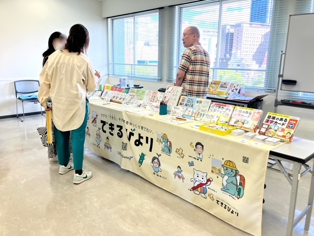 販売用に持参したできるびより教材は、特に「魔法のザラザラ下じき」と「魔法のピタットおりがみ」がとてもよく売れました。「凹凸おなまえドリル」のオーダーもいただきました。