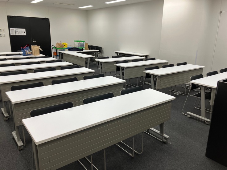 この普通の会議室を体験会会場に仕上げていきます。開催開始は11:00。急げ急げ!!