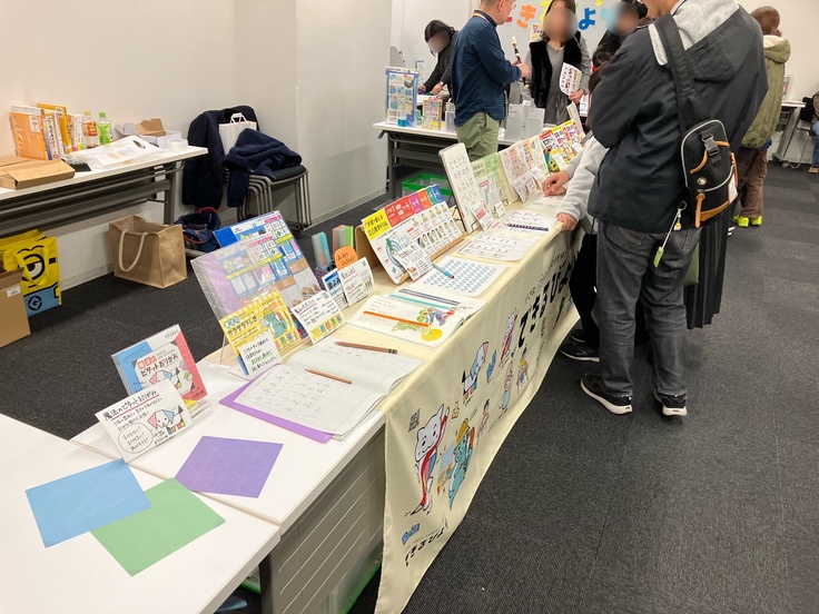 できるびよりコーナーには、いつものように「ピタットおりがみ」や「魔法のザラザラ下じき」の試し折り、試し書きコーナーを。「ネットで見たことはあったけど、実際に書いてみるとこんな感じなんですね~」とか「わぁ、このおりがみ、ホントに折りやすい~~!」などの声が聞かれました。